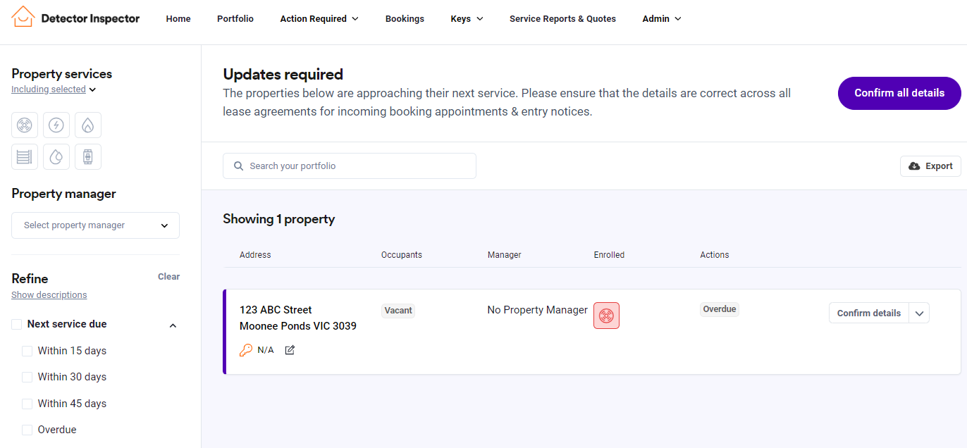 When properties are approaching service we like to confirm property and tenant details if they haven't been updated for some time. This allows us to ensure that the property and tenant details are correct when we attempt to create a booking with the tenants.