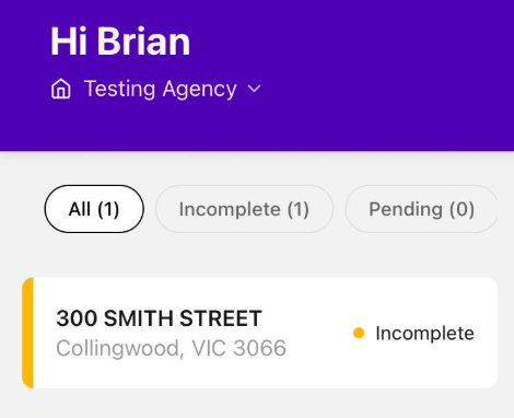 - From the Home Screen, tap the property you wish to submit.