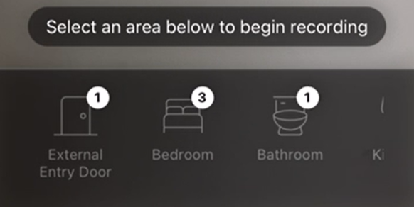 - Tap an area to begin recording. The number next to the room indicates that there are pending actions, and the room hasn't been completed.