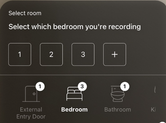 - When capturing rooms, if there are multiple of the same type, select the specific room you’re recording data for, and repeat this process for each room.