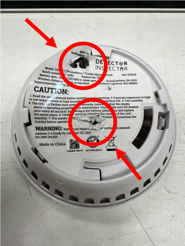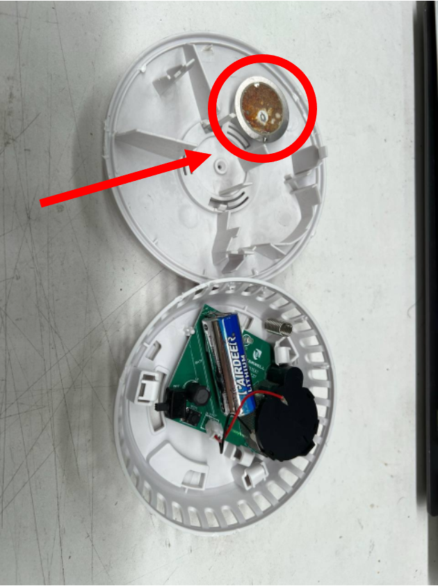 This alarm has clear signs of tampering, indicating that someone has forced entry into the interior of the device. Such damage caused by unauthorised tampering is not categorised as a manufacturing defect, and therefore, is not covered under warranty. Tenants should not attempt to force entry into the interior of the alarm under any circumstances.